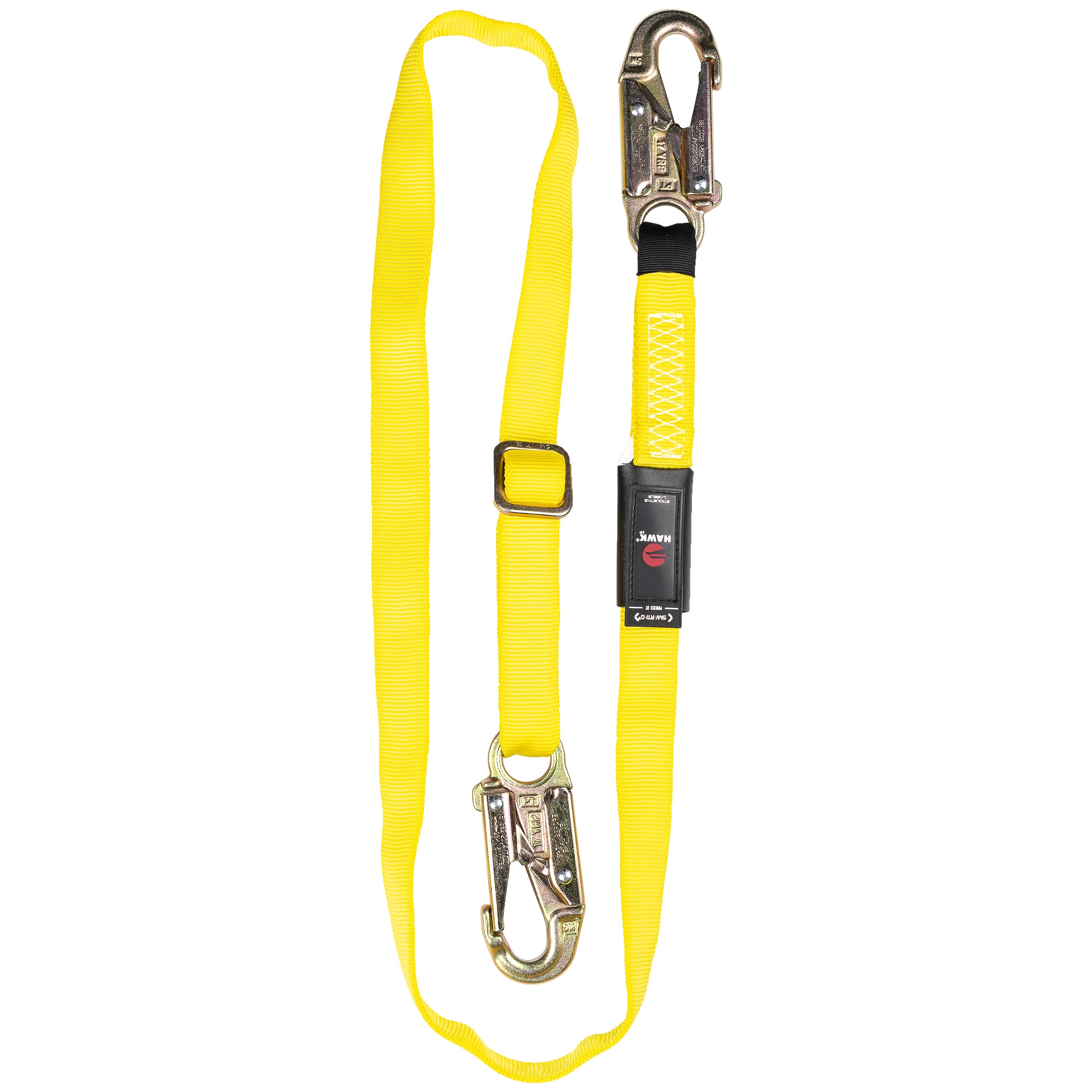 • Línea o cuerda flexible ajustable de 1.20m a 1.80m, la cual permite adecuar la longitud al tipo de trabajo del usuario y sirve para asegurar el arnés a un punto de anclaje mediante ganchos de seguridad de 131mm (5.15") con una apertura Ø19mm (0.74").