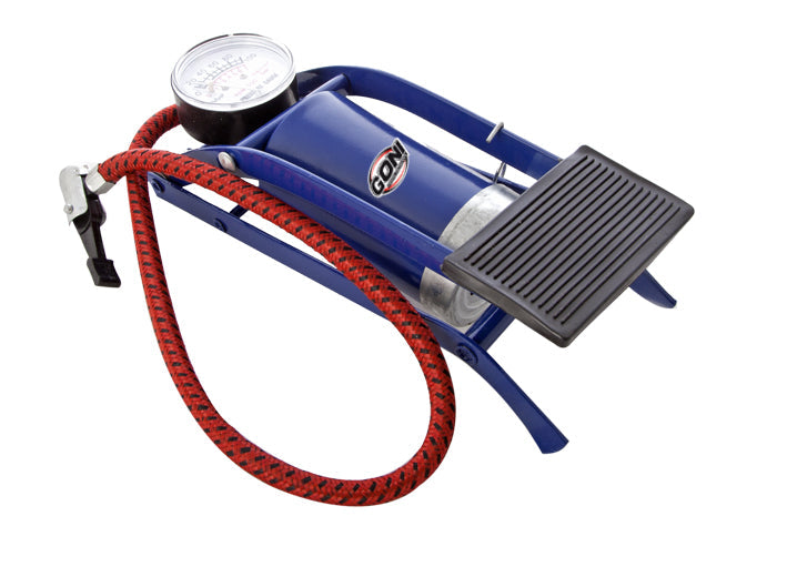 Bomba para Inflar de pedal con manómetro.CARACTERISTICAS:• La bomba de pie permite facilitar el trabajo de llenar de aire cualquier tipo de artículo, puede ser llantas, balones etc.• Tiene incluido un manómetro que permite revisar y controlar la cantidad de aire que se introduce al interior del inflable.